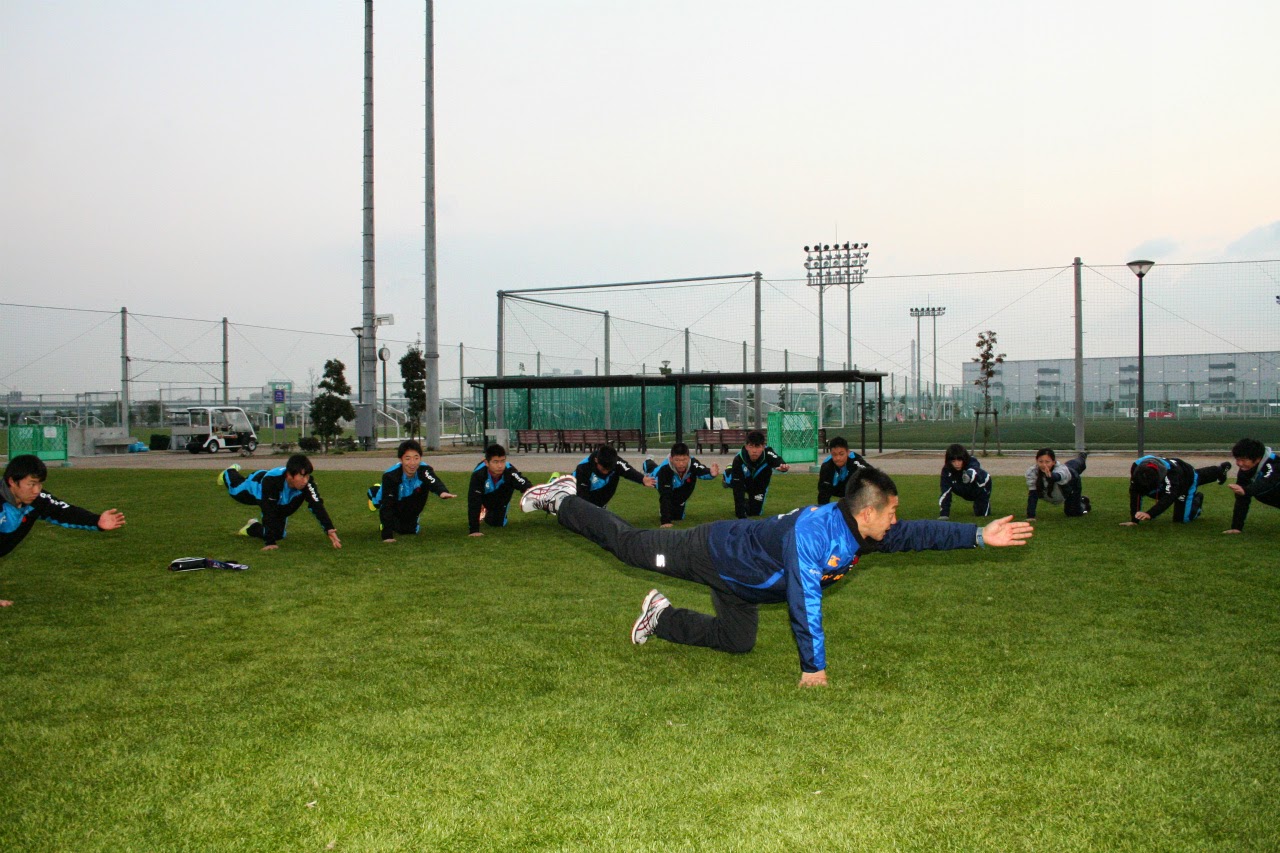 朝食後は少し身体を休めてから、軽く個人練習をしたあと試合に向けてアップを始めます。