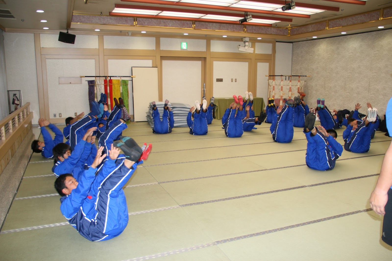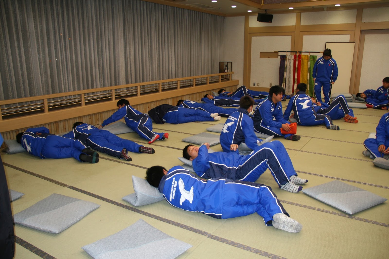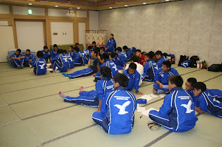 宿舎では大広間で仮眠を取り、朝食のあと全体ミーティングを行い大阪市内へ向かいました。