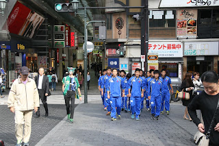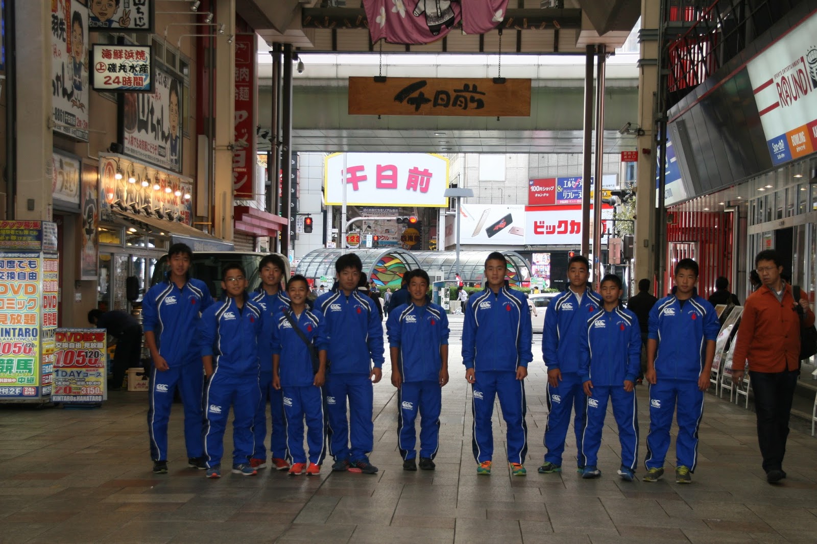 行程の都合で午後からの花園ラグビー場視察、大阪RS選抜との試合に先立ち、お土産を買いに大阪ミナミに立ち寄りました。