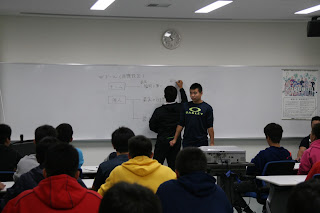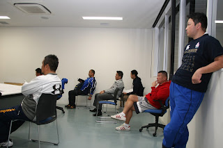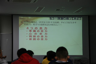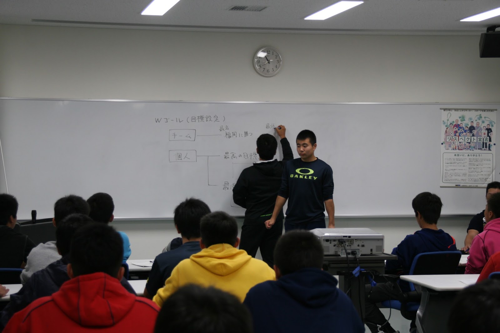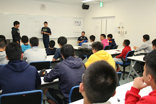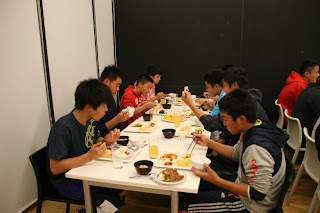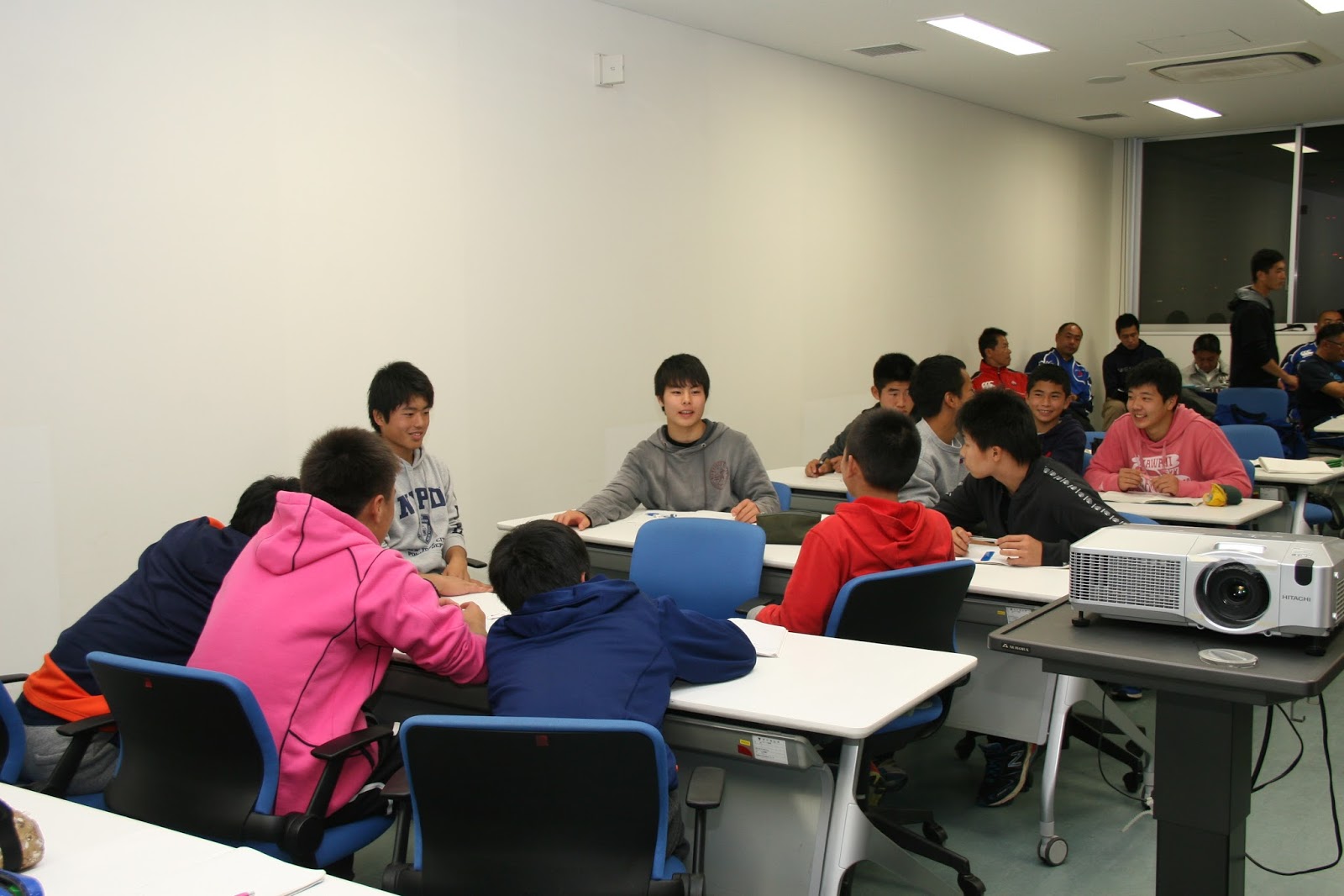 初日の練習後は入浴・自由時間のあと夕食を摂り、明日の試合に向けてチームミーティングを行いました。