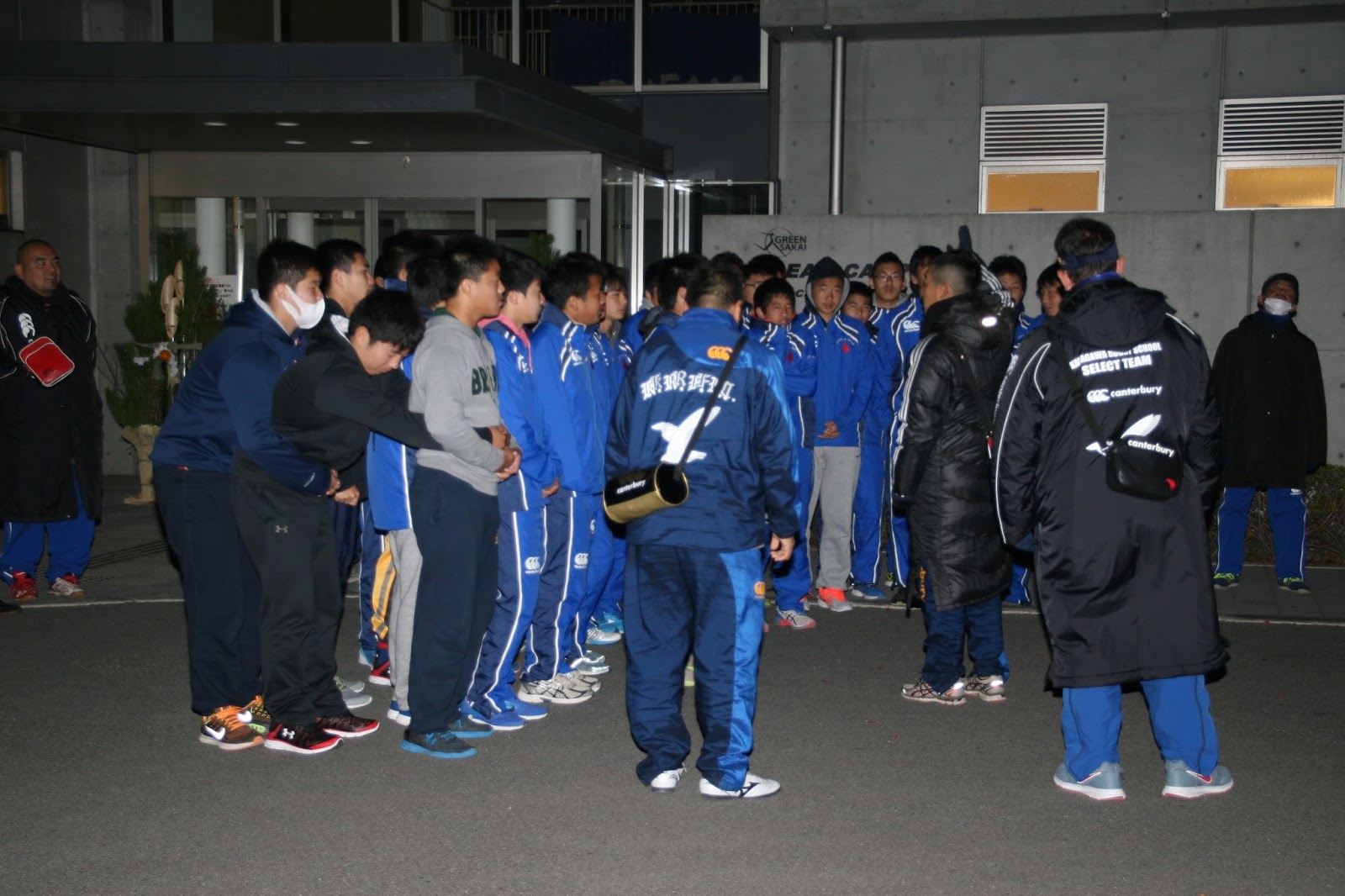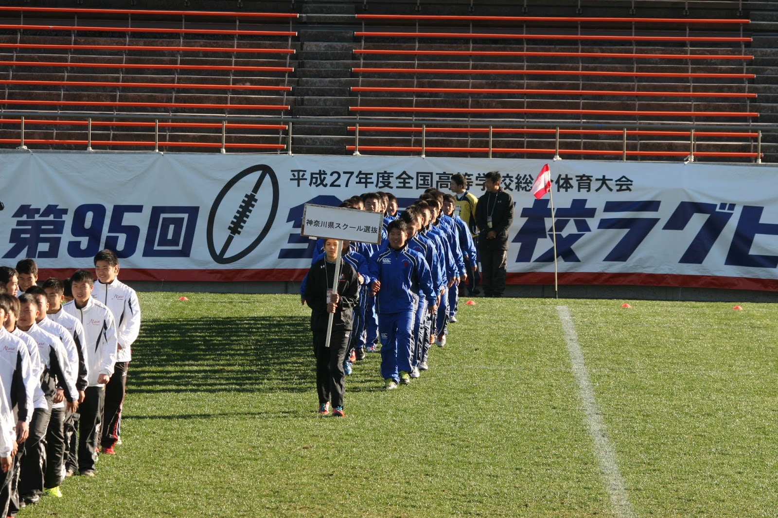 朝食の後は試合会場の花園ラグビー場までバス移動し、開会式に臨みました。