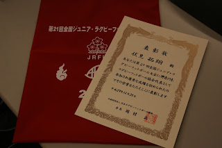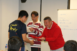 夕食後はいつものミーティング・・・でしたが、今日は全国大会出場の証として表彰状と記念品の授与も行いました。