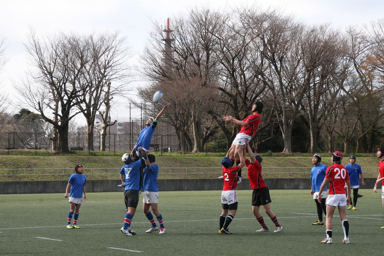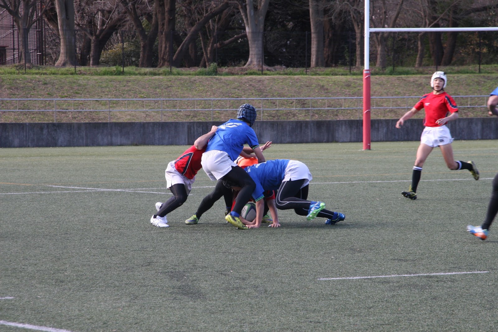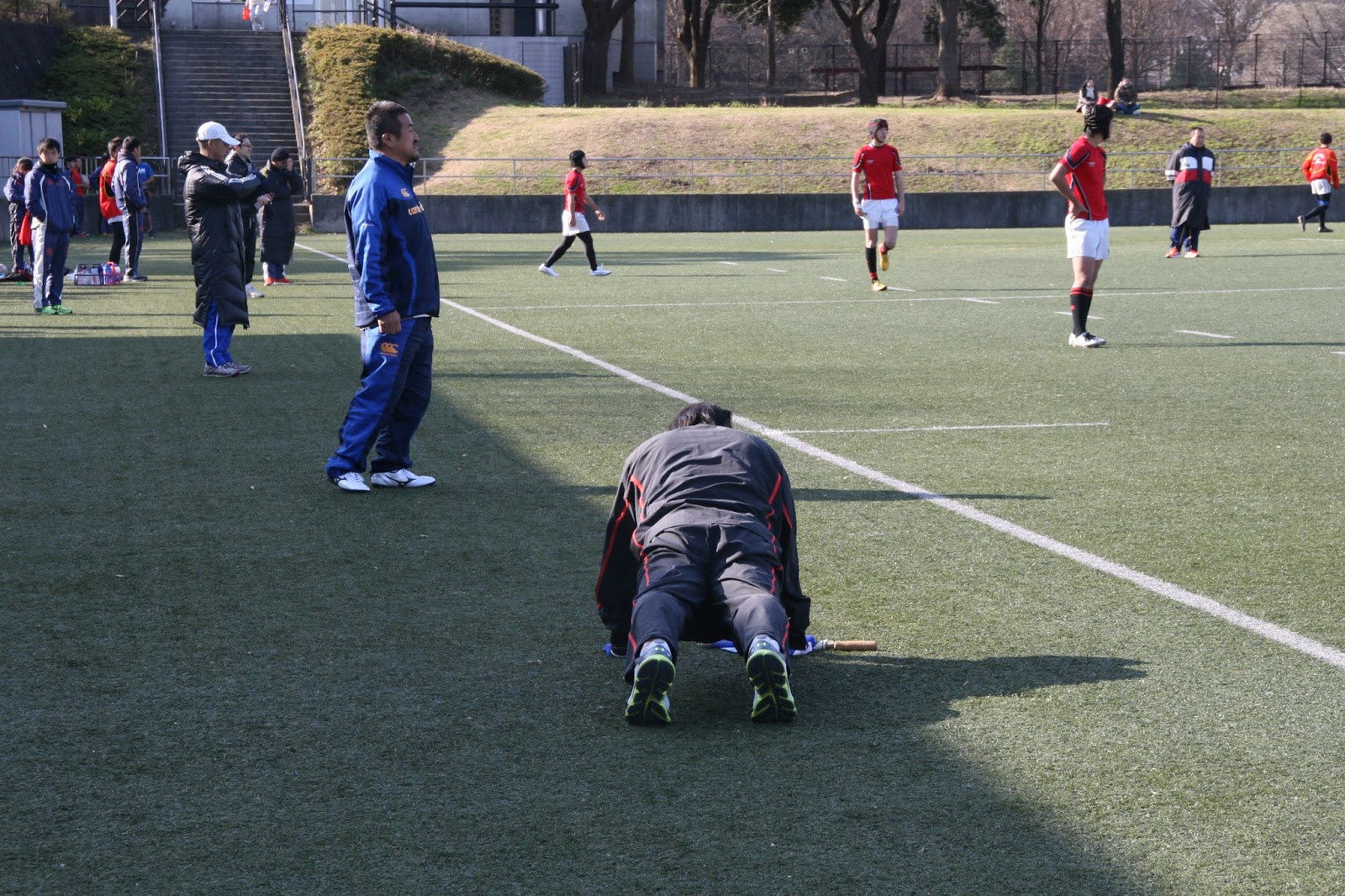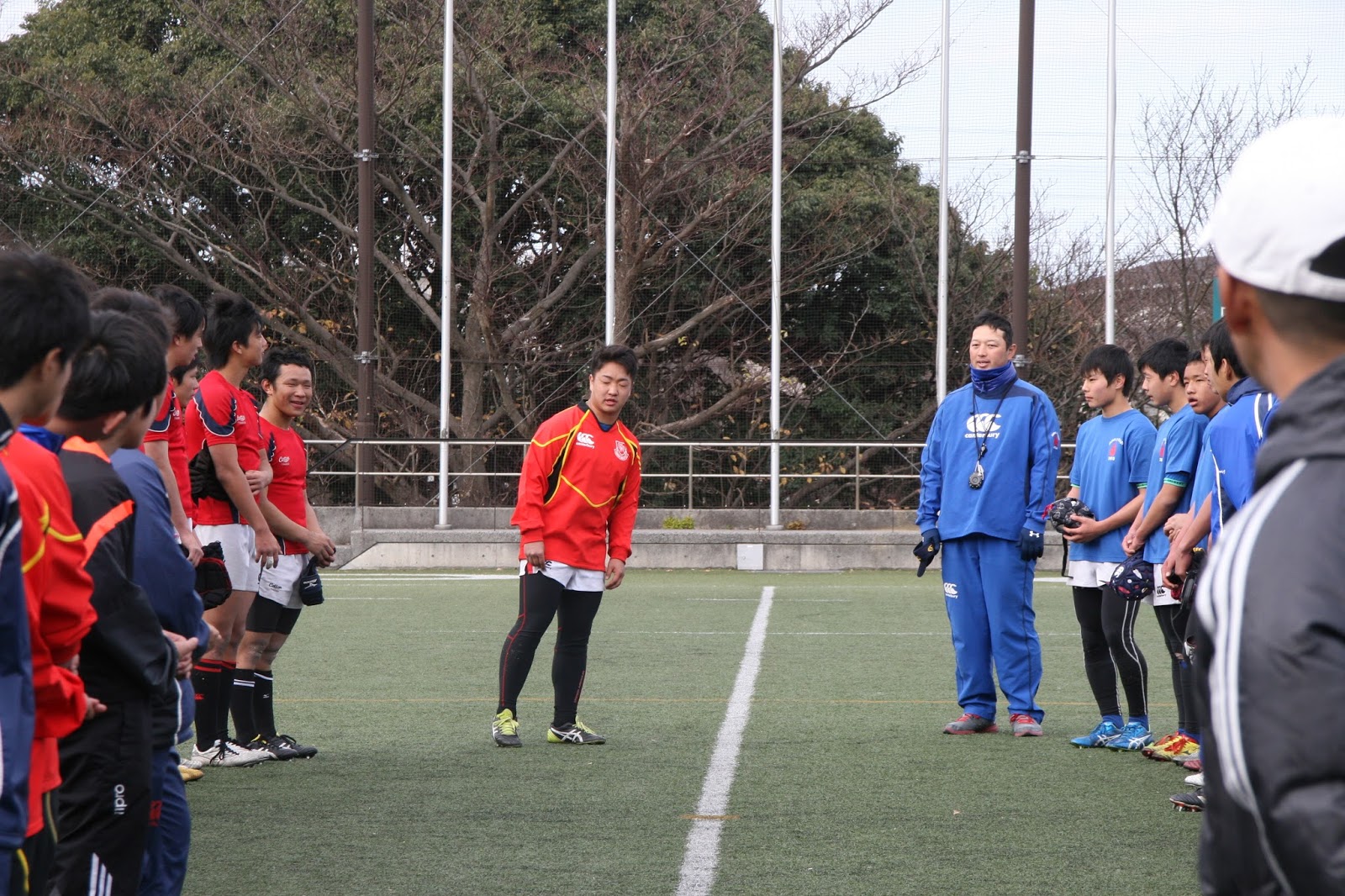 練習の後半は日大高校ラグビー部の胸を借り、アタック&ディフェンスと強化試合を行いました。