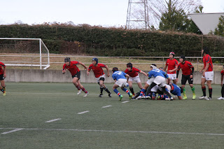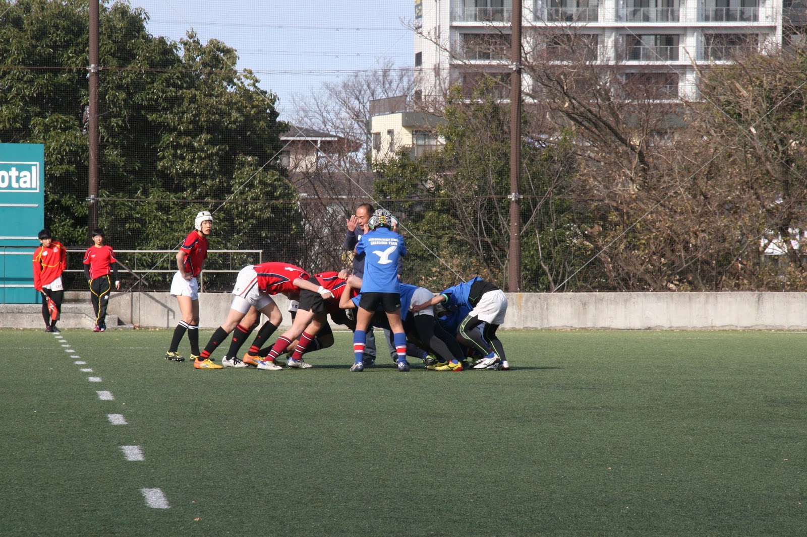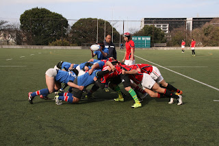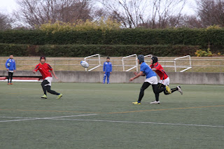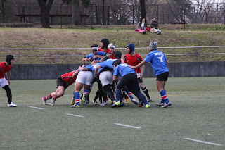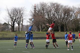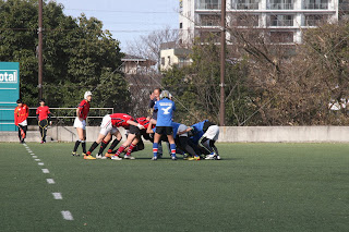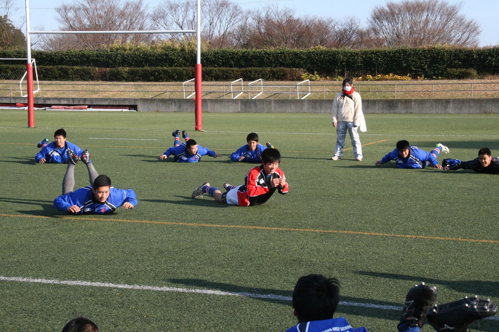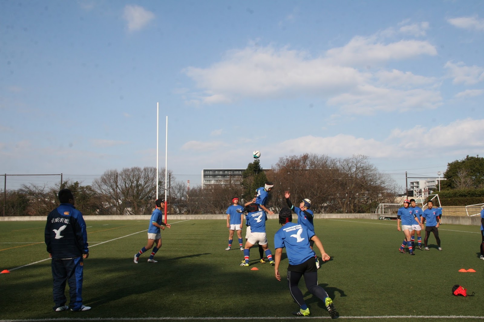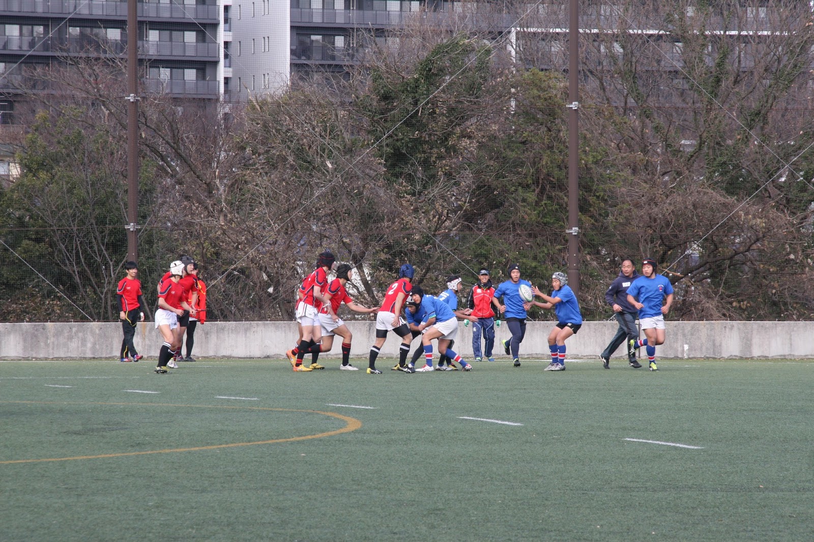 練習の後半は日大高校ラグビー部の胸を借り、アタック&ディフェンスと強化試合を行いました。