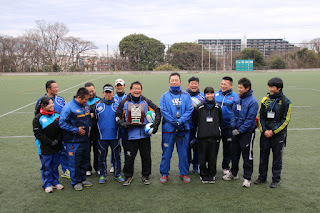監督以下、コーチ、サポートスタッフ昨年の準優勝盾と・・・