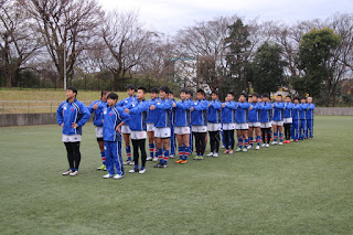 スクール選抜に代々受け継がれているチーム横断幕に自らの思いと名前を記し、メンバー全員で記念撮影、そのあとは花園での開会式に備え、行進練習も行いました。